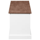 Elevate a hallway or entryway with the delicate details from this modern storage bench. With three drawers and three wooden baskets, this bench is great for storing extra linens or shoes. Rich, warm cappuccino contrasts against crisp white to create a stunning visual. The classic silhouette and dark hardware gives a sophisticated feel to any space. Open horizontal lines on the baskets create a fun and modern feel.