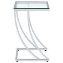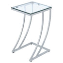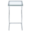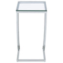 Marvel in the charm of eye-catching curves from this modern accent table. Featuring a tempered glass top, this table is great for displaying framed pictures and candles. Dress up a neutral space with the bright radiance of shiny chrome. Sleek and open, the legs combine to create a supportive and visually interesting base. Stylishly designed legs celebrate contemporary design.