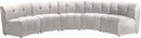 Invest in your home's comfort with this Limitless 5 Piece Sectional. This modular unit offers tons of flexibility in the number of ways that you can put each piece in the Limitless collection together to get the ideal customized look. Upholstered in cream velvet, this beautiful piece is soft and cool to the touch, so you can feel comfortable from every angle. Button and channel tufting add to this unit���s upscale look and contemporary charm.